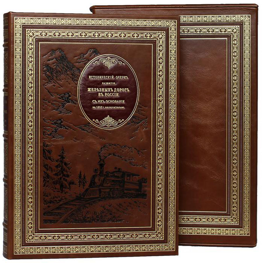 Подарочная книга «Исторический очерк развития железных дорог в России» в кожаном переплете