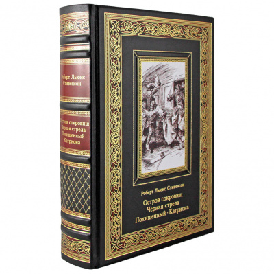 Подарочная книга "Остров сокровищ. Черная стрела. Похищенный" в кожаном переплете