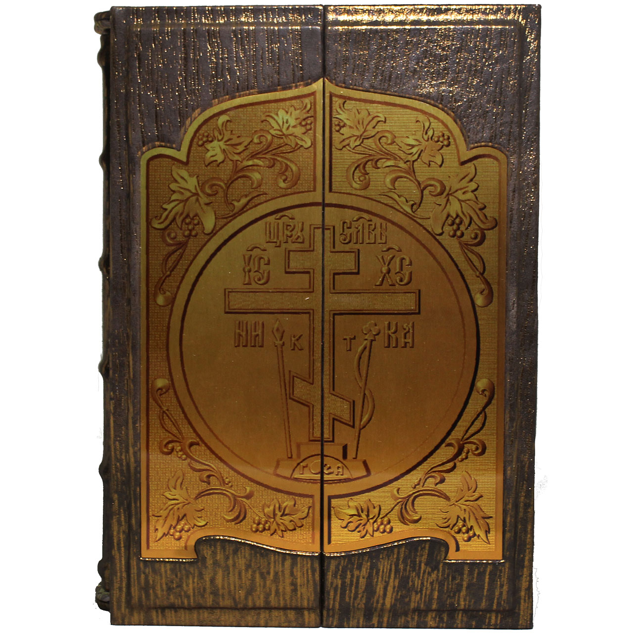 - Переплет: Цельнокожаный, французский, ручной работы. Украшен металлической накладкой с художественным изображением. Двухуровневая обложка и бинтовой корешок создают объем и благородство.