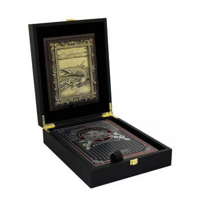 Набор упакован в прочную деревянную коробку, обтянутую кожей, что обеспечивает надежную защиту при транспортировке. Плакетка изготовлена из прочного литьевого пластика.