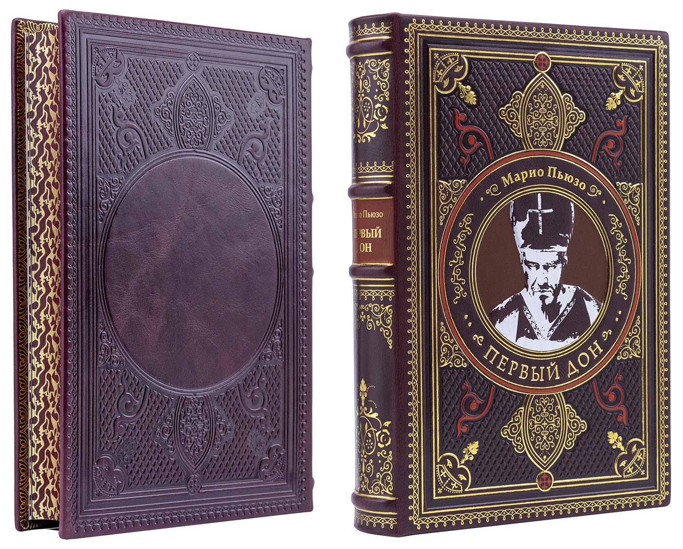 Подарочное издание книги Марио Пьюзо «Первый дон» представляет собой образец высокого книжного искусства. Переплет изготовлен из натуральной кожи с применением рельефного и цветного тиснения. Каждый экземпляр входит в ограниченный тираж и является результатом полностью ручной работы. Книжный блок отшлифован, тонирован и украшен орнаментом, а текст отпечатан на немецкой бумаге Ozon Ivory. Индивидуальный дизайн страниц и эксклюзивные иллюстрации создают особую атмосферу для чтения. Это издание создано для тех, кто ценит материальную культуру книги как объекта.