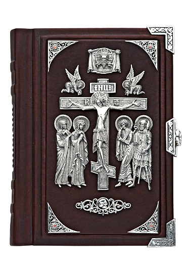 Библия «Распятие Господне» в кожаном переплете с серебром